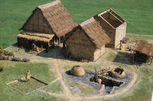 Cette maquette restitue un atelier de potiers gallo-romains du IIIe siècle, fouillé à La Boissière-École (78). Elle permet de comprendre les étapes principales du travail d’un potier, depuis le foulage de l’argile jusqu’à la cuisson des céramiques.